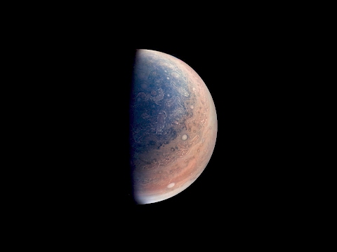 Using a high-resolution color camera of the NASA’s Juno Spacecraft, scientists have captured swirling clouds and spinning storms on Jupiter’s south pole.