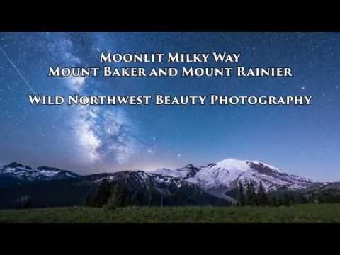 This video contains images that portray the beauty of the Milky Way while rising above Mount Baker and Mount Rainier, Washington. The images are captured by an astrophotographer, Meg McDonald.